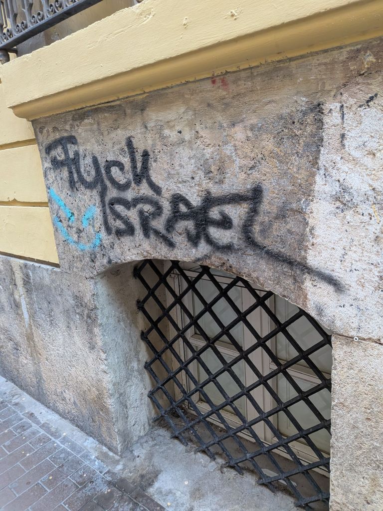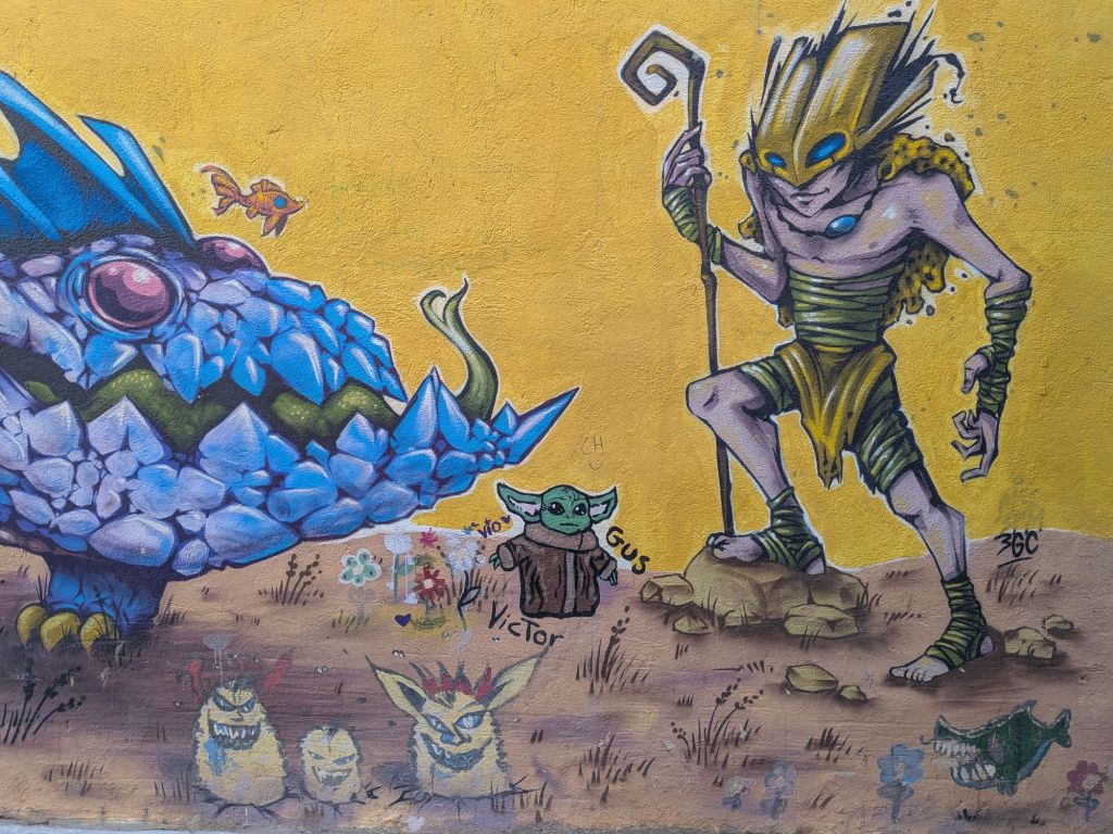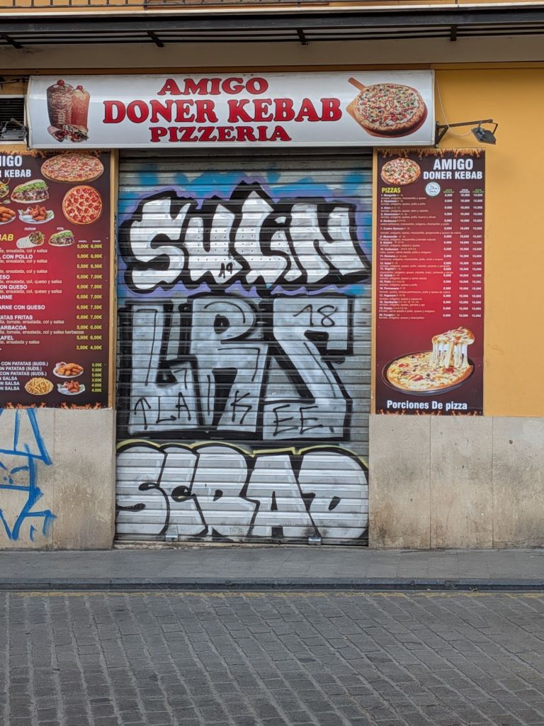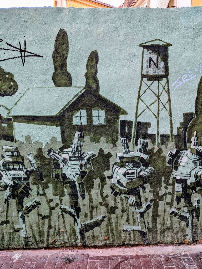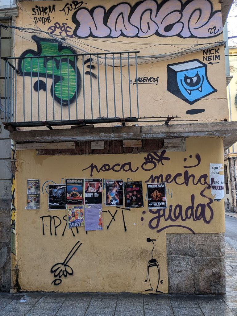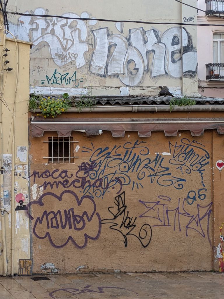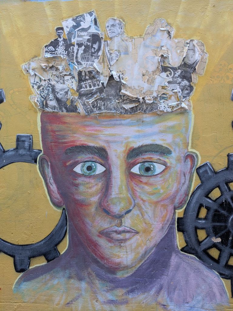 Today between classes I was puzzling over the abundance of interesting street art and the much greater abundance of (some political, mostly not, all pretty ugly and incompetent) graffiti: