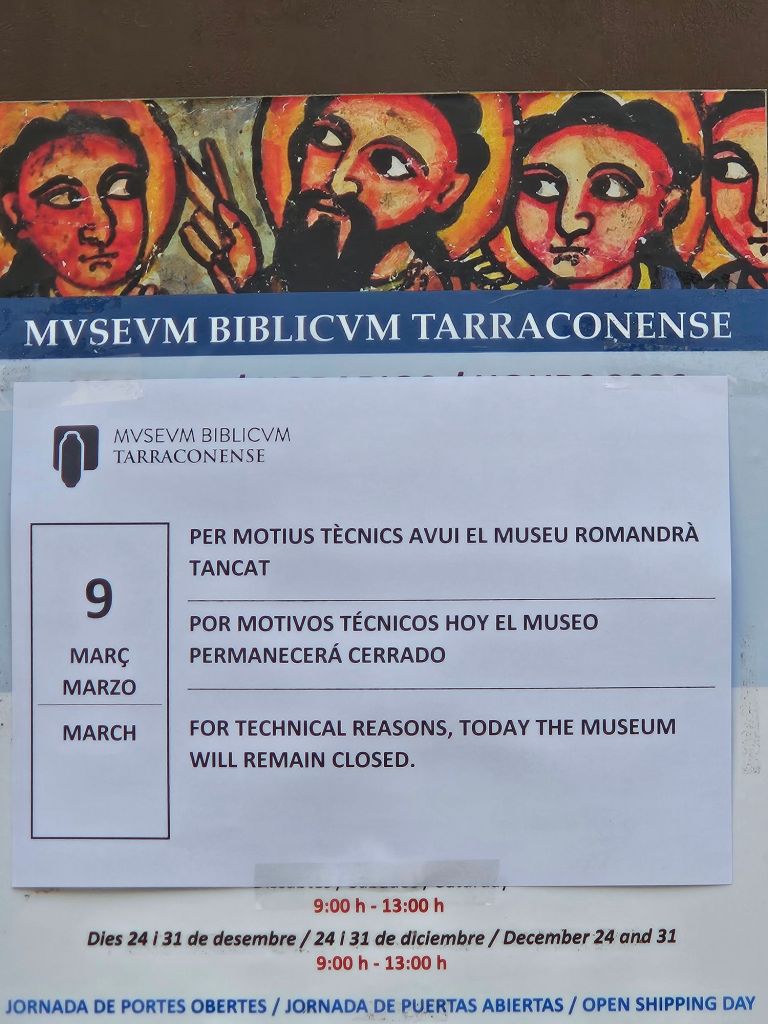 First stop, the Biblical Museum. Sign on the door: