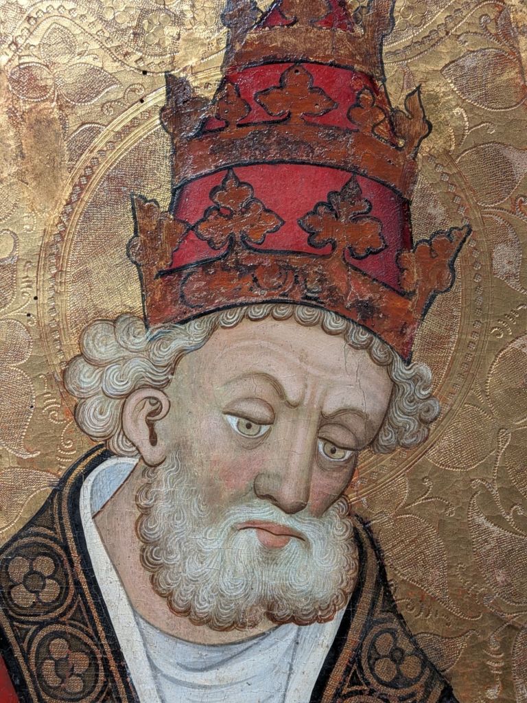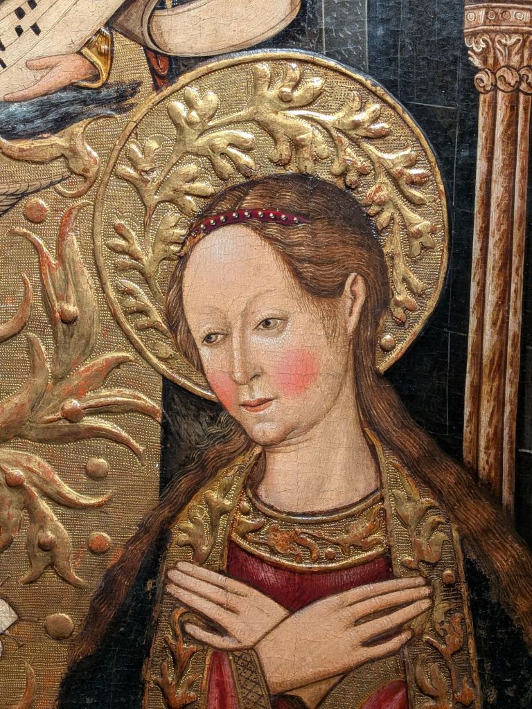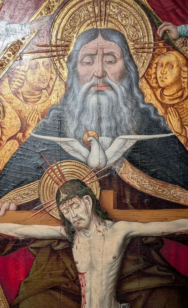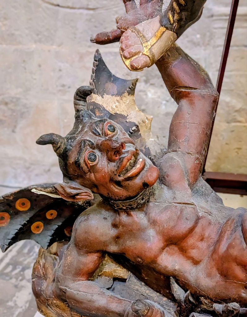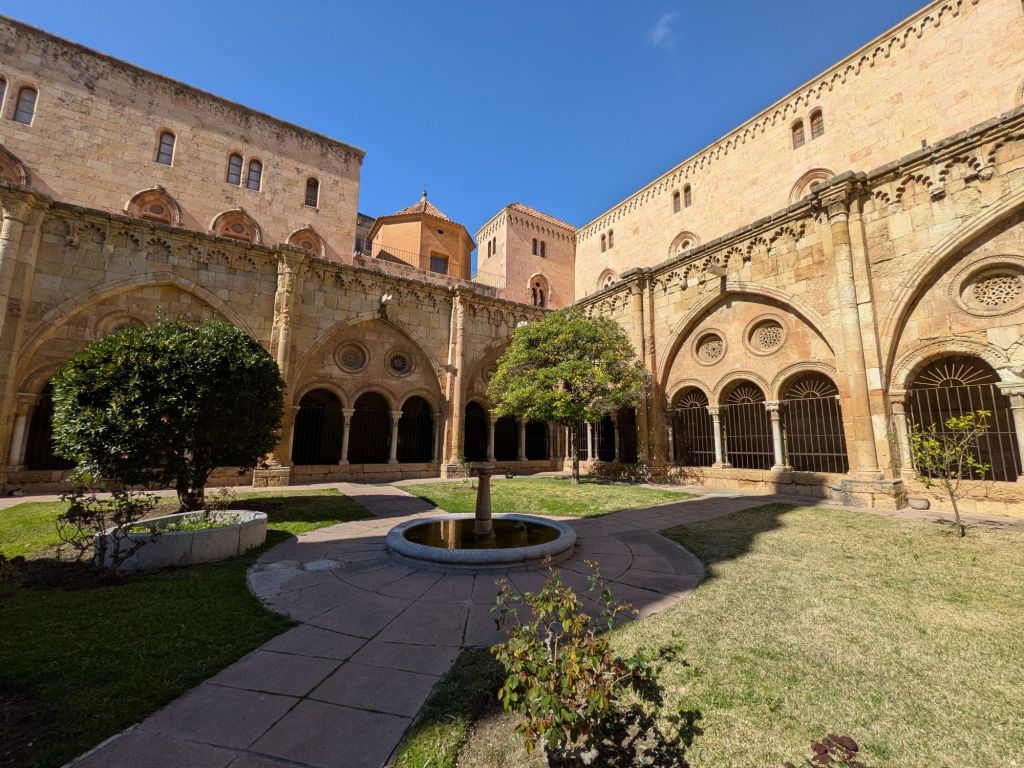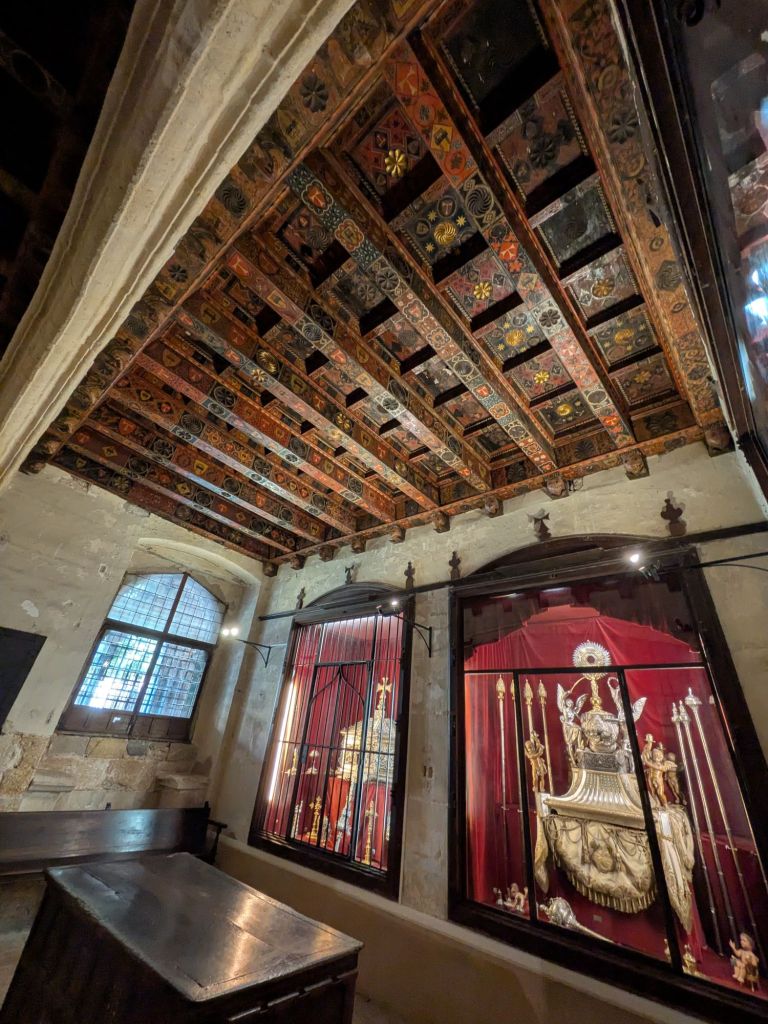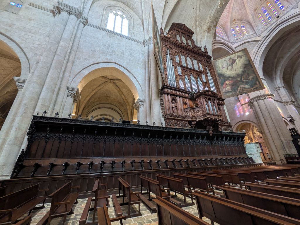 And here’s another one (of about six), plus the vast C15 choir stalls and organ, a C14 coffered ceiling in the treasury, an unbelievably beautiful and well preserved 1510-ish altarpiece in one of more than a dozen side chapels, and the lovely, sun-warmed cloisters: