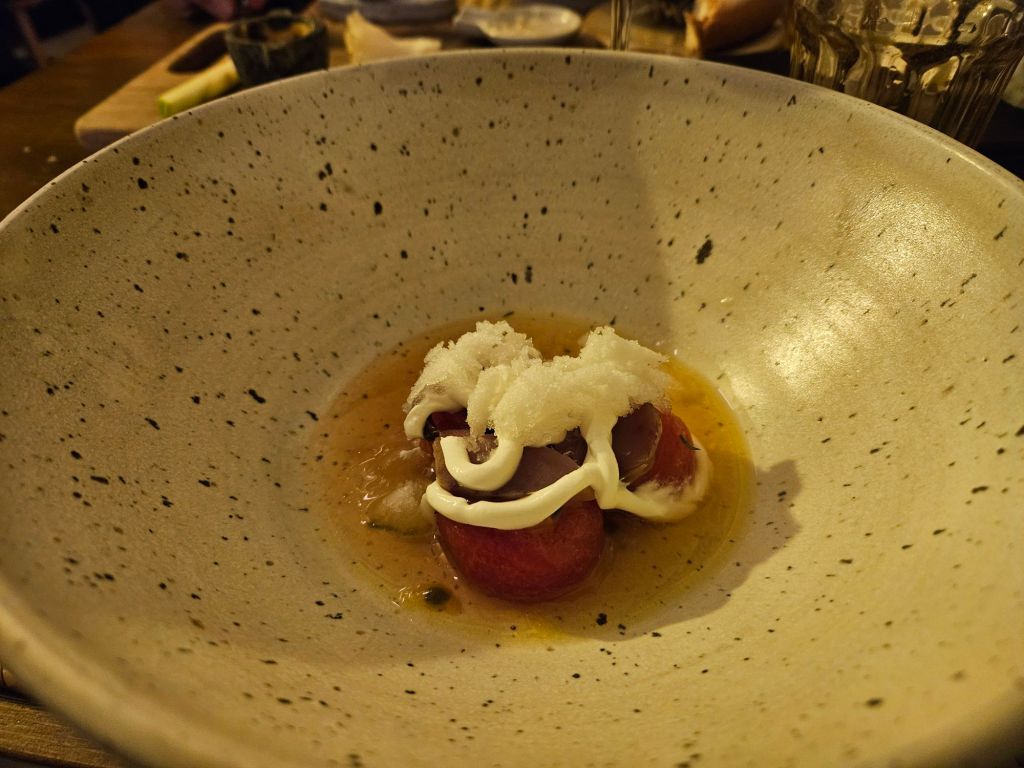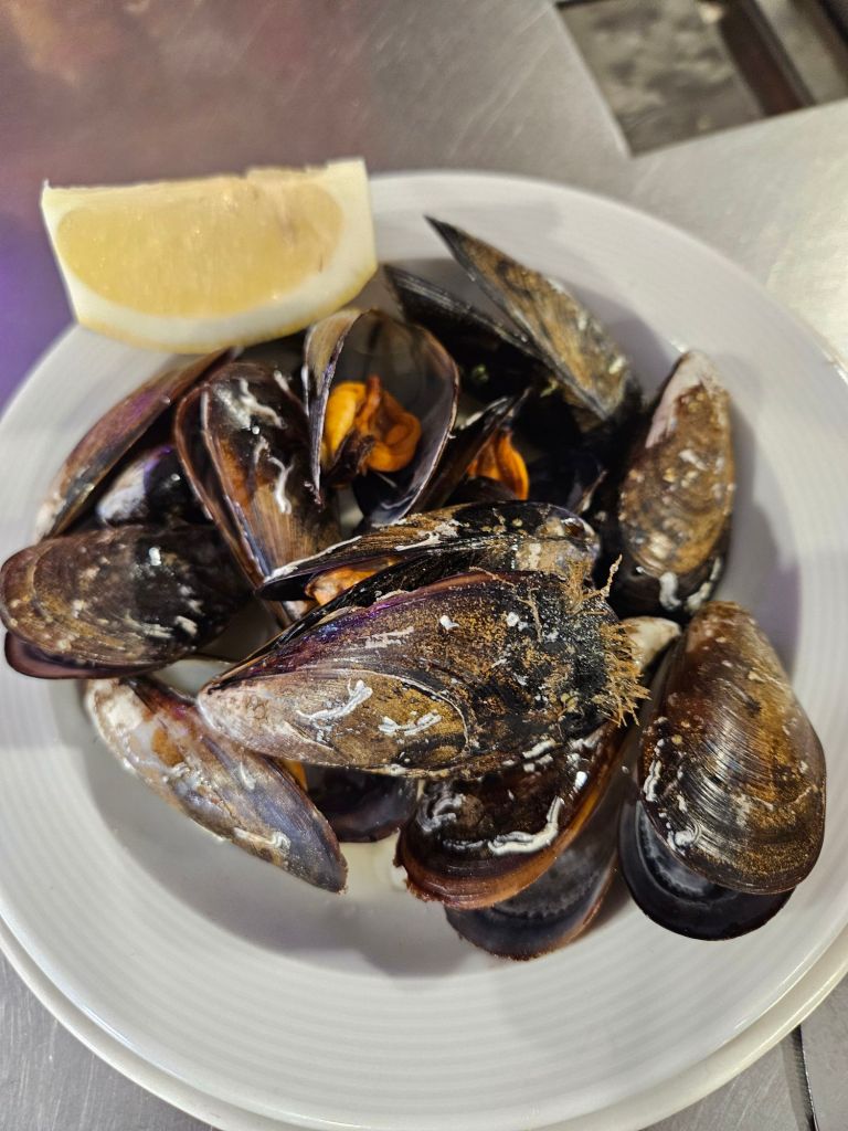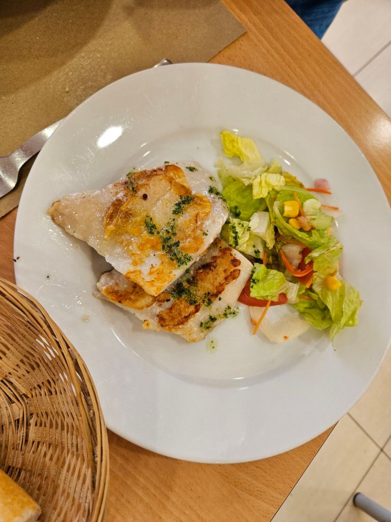 We headed back to our hotel for a little downtime and a light late lunch of crackers and cheese leftovers from yesterday, and to await the verdict on the Northern lights tour. Once again it was cancelled (high winds and clouds), so we consoled ourselves with another trip to the pools and a delicious seafood dinner at Mar. R ate the arctic char–hoping to recreate the magical plate he’d had when we were in Iceland 8 years ago–and I tried wolf fish. It was delicious and unusual and definitely checked my box of something that surprised and delighted.